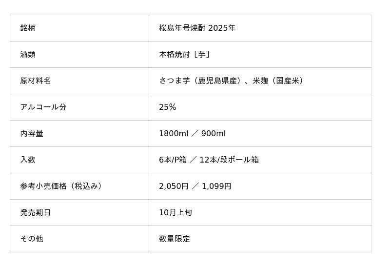 本坊酒造株式会社(本社:鹿児島市、社長:本坊和人)は、「桜島年号焼酎 2025年」を発売いたします。