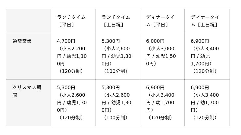 ※上記料金は税金・サービス料込みです