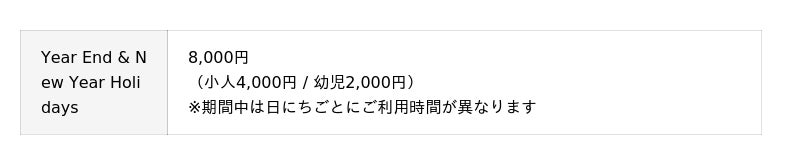 「Year End & New Year Holidays」限定 12月29日(月)~2026年1月4日(日)