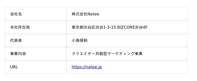 Nateeは「人類をタレントに。」をミッションに掲げ、個人をエンパワーメントし産業構造の変化を起こす事業を創造する会社です。SNSに特化したクリエイター共創型マーケティング事業では、ブランドとクリエイターの世界観をかけ合わせた「共創型」のプロモーション施策を提供しています。