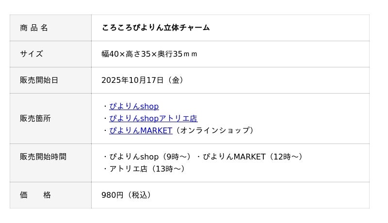 2025年10月17日(金)より、ぴよりんshopをはじめとする全3店舗で販売スタート!