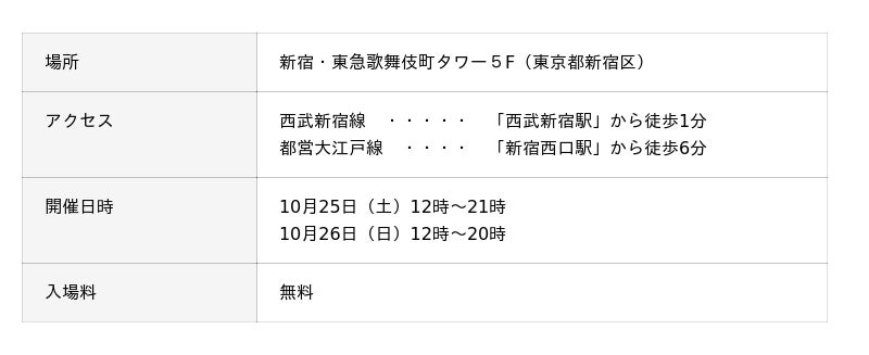 【新宿・東急歌舞伎町タワー】10月25日~26日の2日間限定