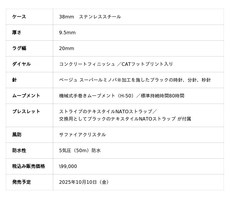 ハミルトンストア 東京でのみ発売される「カーキ フィールド メカ」には、キャットストリートのエッセンスとポップカルチャーが存分に表現されています。質感あふれるコンクリートダイヤルに刻まれた猫の足跡、ケースバックに刻まれたストリートスタイルの”HIPSTER CAT”にぜひ、ご注目ください。