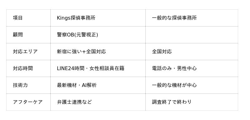 こうした情報発信を通じて、Kings探偵事務所は“調査のプロ”としての信頼性を高めると同時に、
