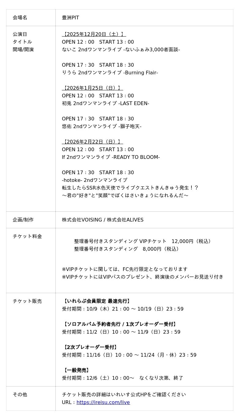 ■いれいすソロライブ詳細