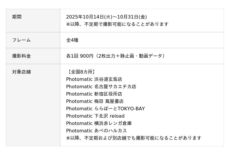 Photomatic 対象店舗 詳細