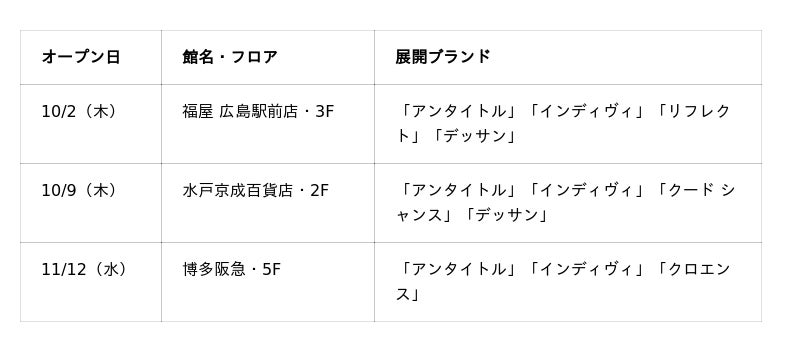 キャリアブランド「アンタイトル」を中心に、新たな顧客体験を提供するブランド編集型ストア。今秋3店舗のオープンに伴い、全国11店舗展開へと拡大。