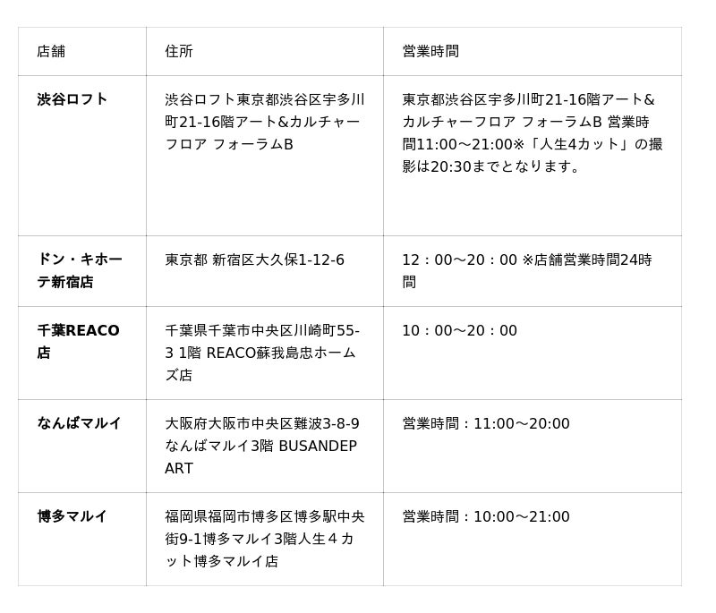 ■人生4カットとは韓国での発売から5年で590店舗を開設した、韓国国内市場シェア50%以上のプレミアムフォトブランド。「盛れないプリクラ」として今までにない地位を確立し、アイドルのカムバック時期やセンイル(誕生日)の推し活として、推しを楽しむ国内外の新たな文化として、MZ世代を筆頭に多くの顧客を魅了。多くのK-POPアイドルやアニメーションとのコラボフレームが登場し、韓国のみならず日本国内外のインバウンド人気も急上昇している。