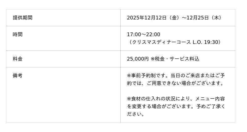 【ホテルメトロポリタン 丸の内】クリスマスディナーコースの販売を開始