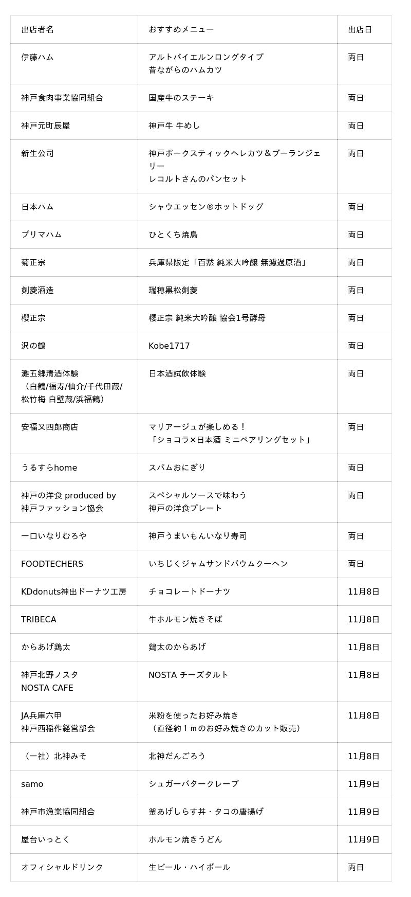 神戸が誇る肉・酒・スイーツをはじめとする食文化を、秋空の下お楽しみください。