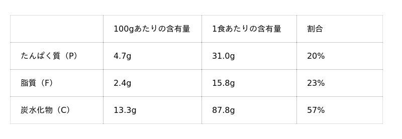 ※PFCバランスの割合は四捨五入しているため、合計100%にならない場合があります