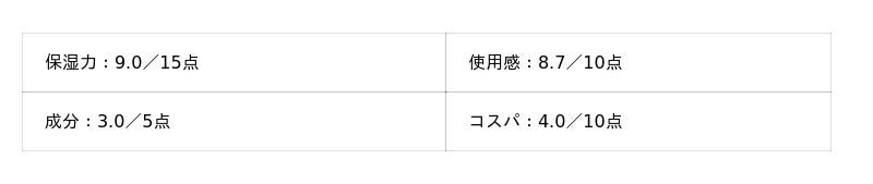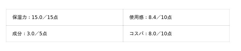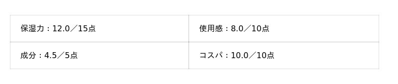 - 保湿力:15点満点
