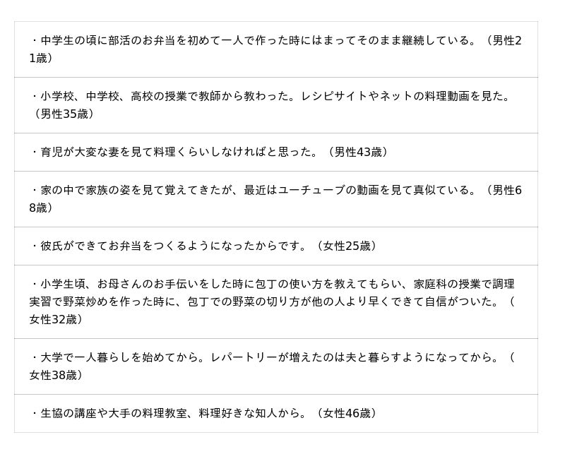 ☆料理を学んだ・身につけた環境(全5,868件)