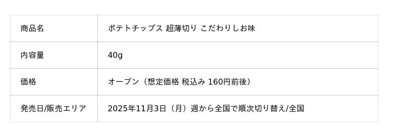 カルビー株式会社(本社:東京都千代田区、代表取締役社長兼CEO:江原 信)は、今年9月に発売50周年を迎えた「カルビーポテトチップス」ブランドの『ポテトチップス うすしお味』の中身とパッケージを3年ぶりにリニューアルし、2025年11月3日(月)週より全国で順次切り替えて発売します。あわせて同ブランドで展開している『ポテトチップス 超薄切り こだわりしお味』『ポテトチップス ザ厚切り のためのうすしお味』もリニューアルを行い、各商品の食感の違いを伝えてまいります。