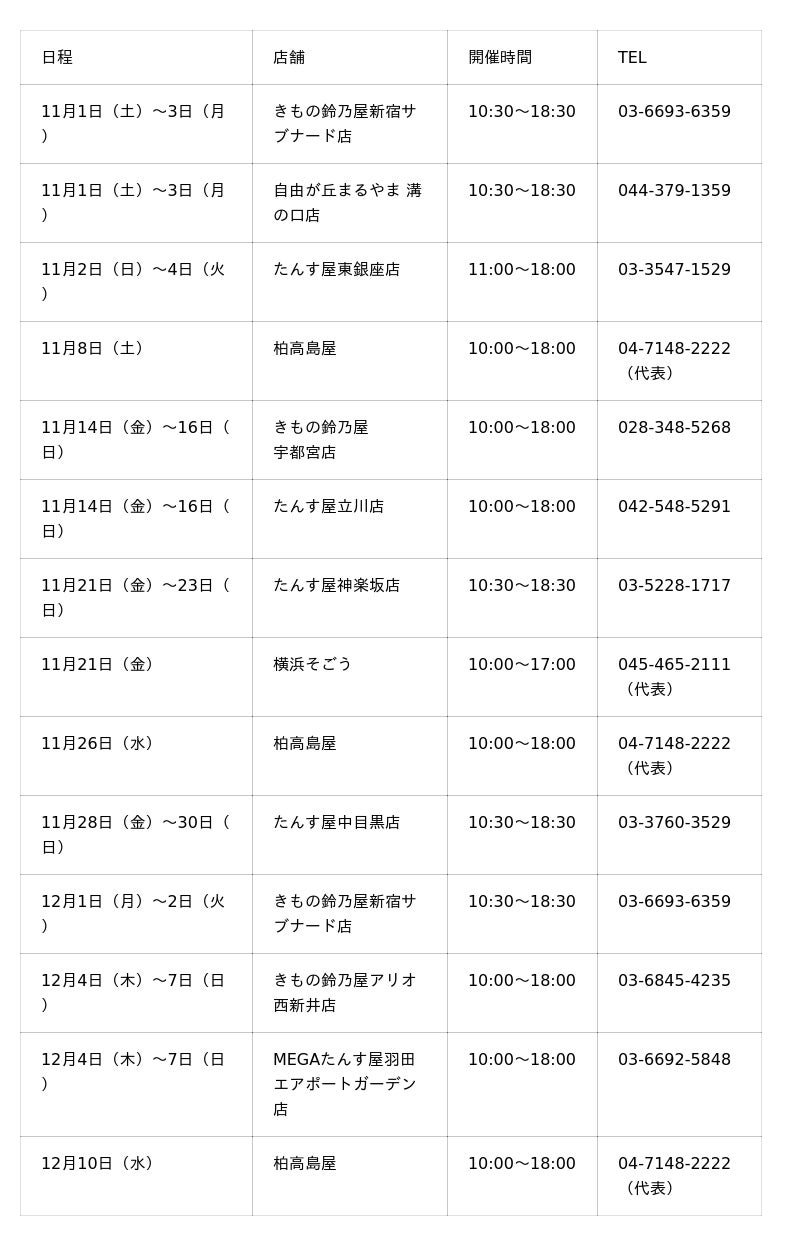 ※横浜そごう、柏高島屋のご予約はこうじ屋(044-819-8212)で承ります。