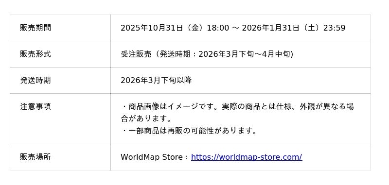 本コラボレーションは2026年内も継続して実施し、2026年夏に追加ラインナップを予定しております。