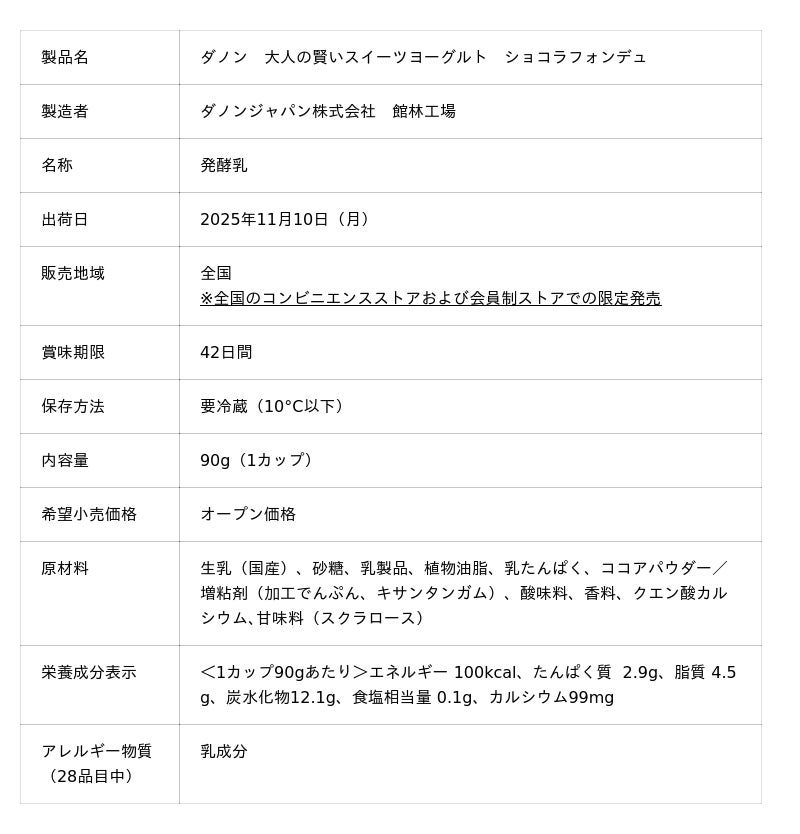ダノンジャパン株式会社(本社:東京都目黒区、代表取締役社長:ロドリゴ・リマ、以下ダノンジャパン)は、新カテゴリーのデザートヨーグルト「ダノン 大人の賢いスイーツヨーグルト ショコラフォンデュ」を期間限定で発売します。2025年11月10日(月)より全国のコンビニエンスストア、会員制ストア向けに限定販売で出荷を開始します。
