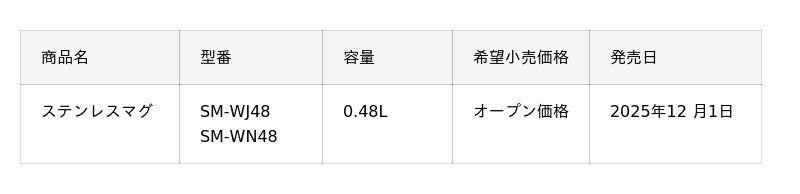 象印マホービン株式会社は、“せん”と“パッキン”がひとつになった「シームレスせん」シリーズから、新しいデザインのステンレスマグ(SM-WJ48・SM-WN48)を2025年12月1日より発売します。
