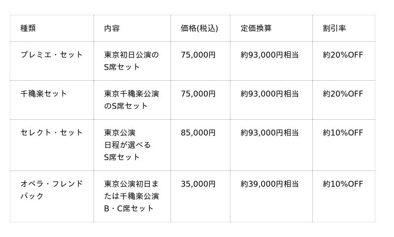 最大20%OFFで4公演(全国公演『カルメン』を除く)を通して楽しめる特別チケット。