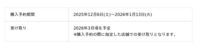 ・抽選申込期間:11月10日(月)12:00~11月17日(月)23:59