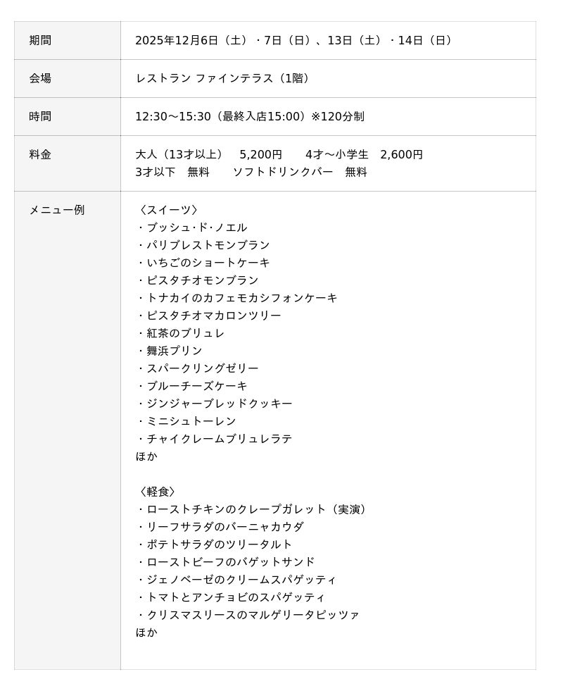 スイーツビュッフェ「Santa's Sweet Christmas」概要