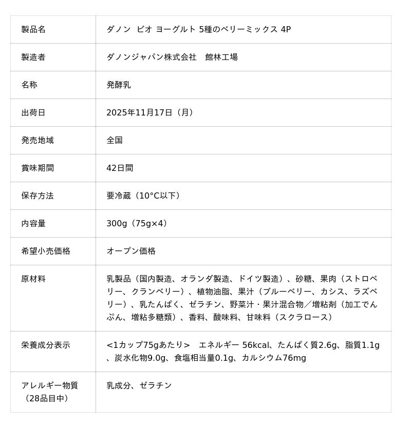 ※プレスリリースに掲載されている内容(原材料や栄養成分表示含む)は発表時点の情報となり、その後予告なしに変更となる場合があります。