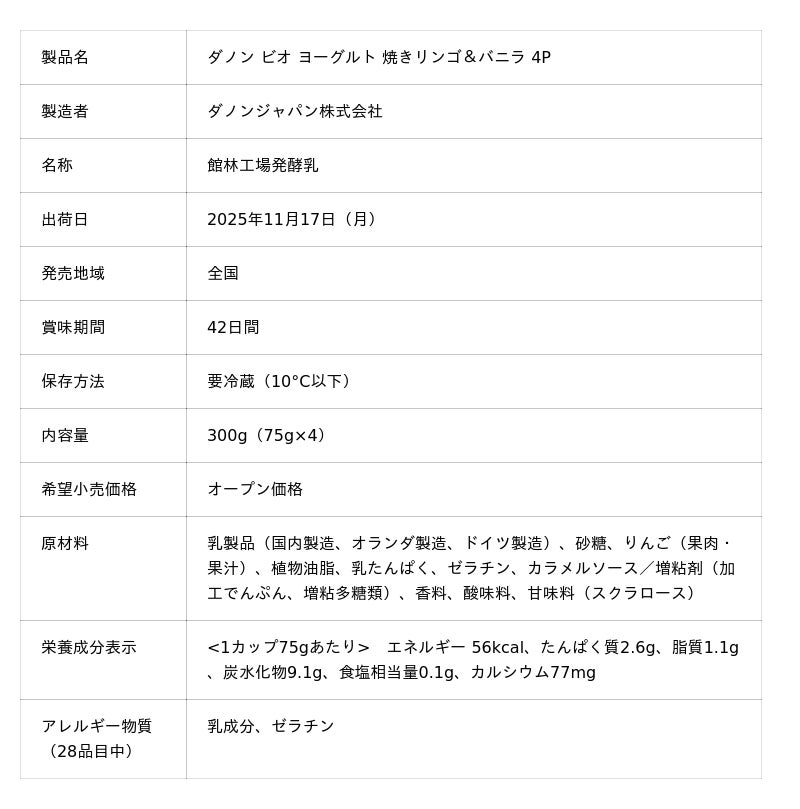 「ダノン ビオ ヨーグルト 焼きリンゴ&バニラ」