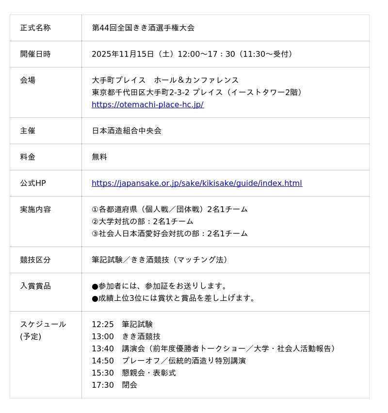 ■「第44回全国きき酒選手権大会」開催概要