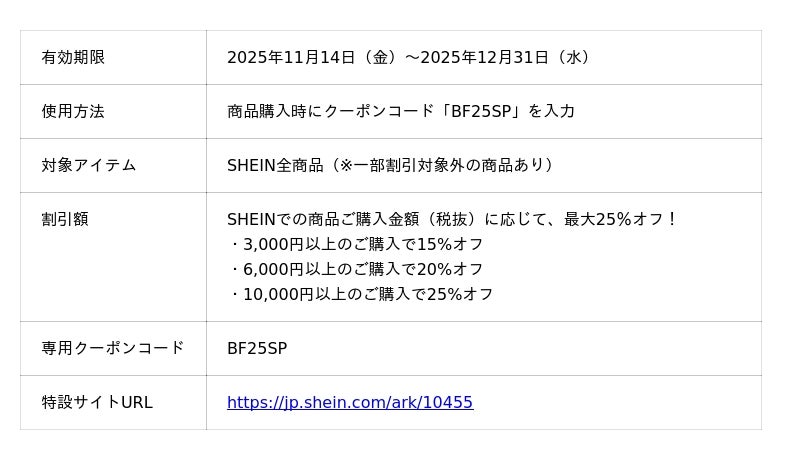特設サイトURL:https://jp.shein.com/ark/10455