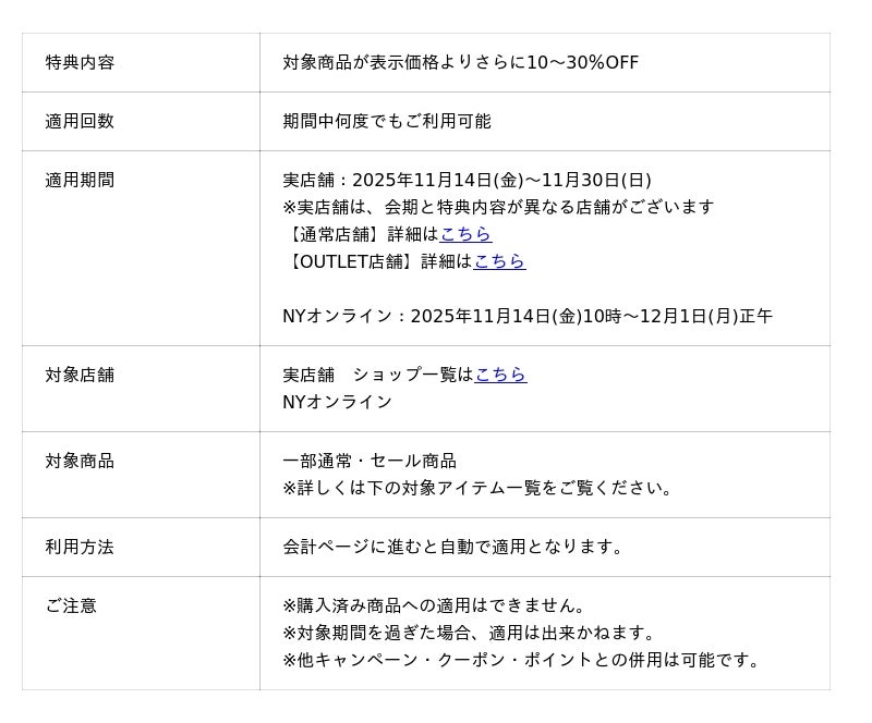 【11/14(金)12:00より】NYオンラインにて『BLACK FRIDAY SALE MAX30%OFF』開催中!