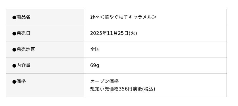 【30周年!】インバウンドでも大好評の紗々ブランド!海外でトレンドの“柚子”を使用『紗々<華やぐ柚子キャラメル>』11月25日(火) より全国で新発売