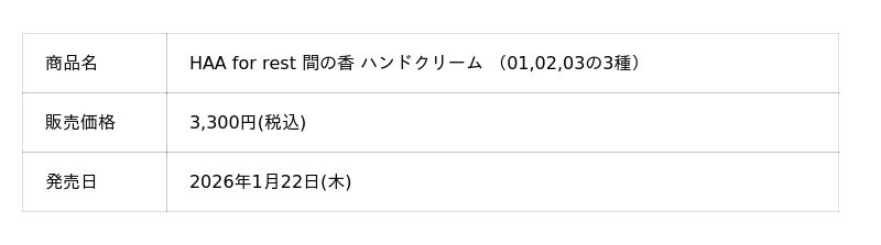2026年1月22日発売の「HAA for rest 間の香」シリーズ