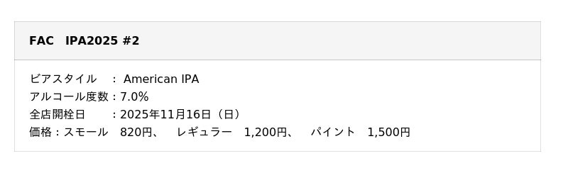 【よなよなビアワークス】華やかなホップ香が弾ける 数量限定「FAC IPA2025 #2」登場
