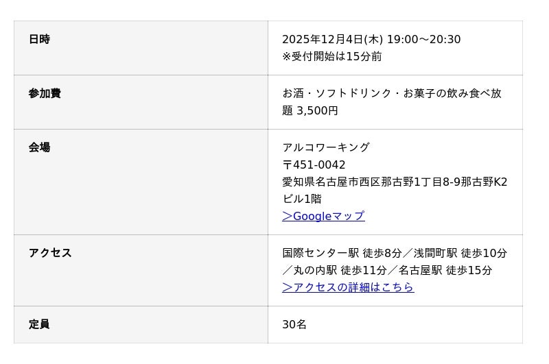 当イベントは、愛知県名古屋市のお酒飲み放題コワーキングスペース「アルコワーキング」が主催しています。