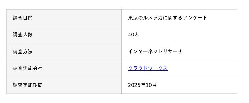 東京のルメッカに関するアンケートの概要
