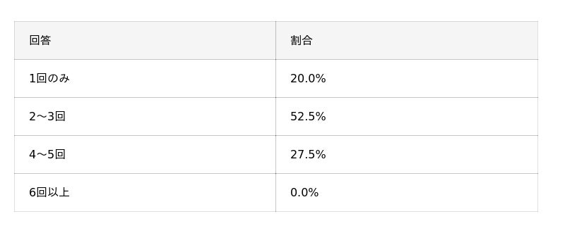 ルメッカを「2~3回」受けたと回答した人は全体の約半数でした。また、施術者の8割が複数回受けていることから、回数を重ねることで効果がさらに高まりやすいことがわかります。