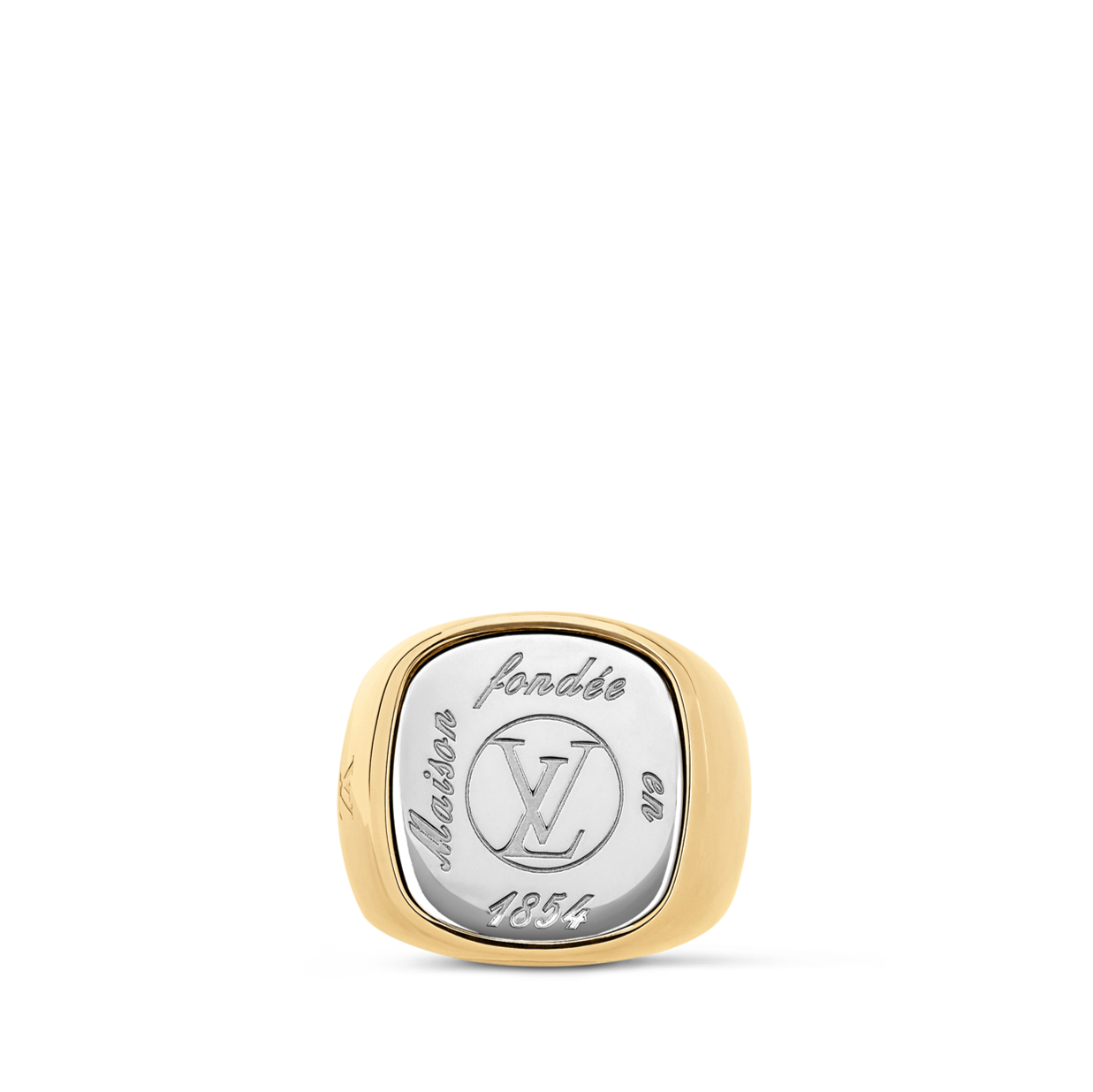 ユニークなデザインが魅力の「リング・LV シグネット」。コンテンポラリーなエレガンスとタイムレスなメゾンの伝統を融合させたアイテムです。チャンキーなゴールドカラーのバンドには、LVサークルのエンブレムから着想を得たシルバーカラーのシグネットがあしらわれ、メゾンの歴史に関わるディテールが精緻に刻印されています。豊かな歴史に根差した力強いアイデンティティを表現する、プレシャスなリングです。