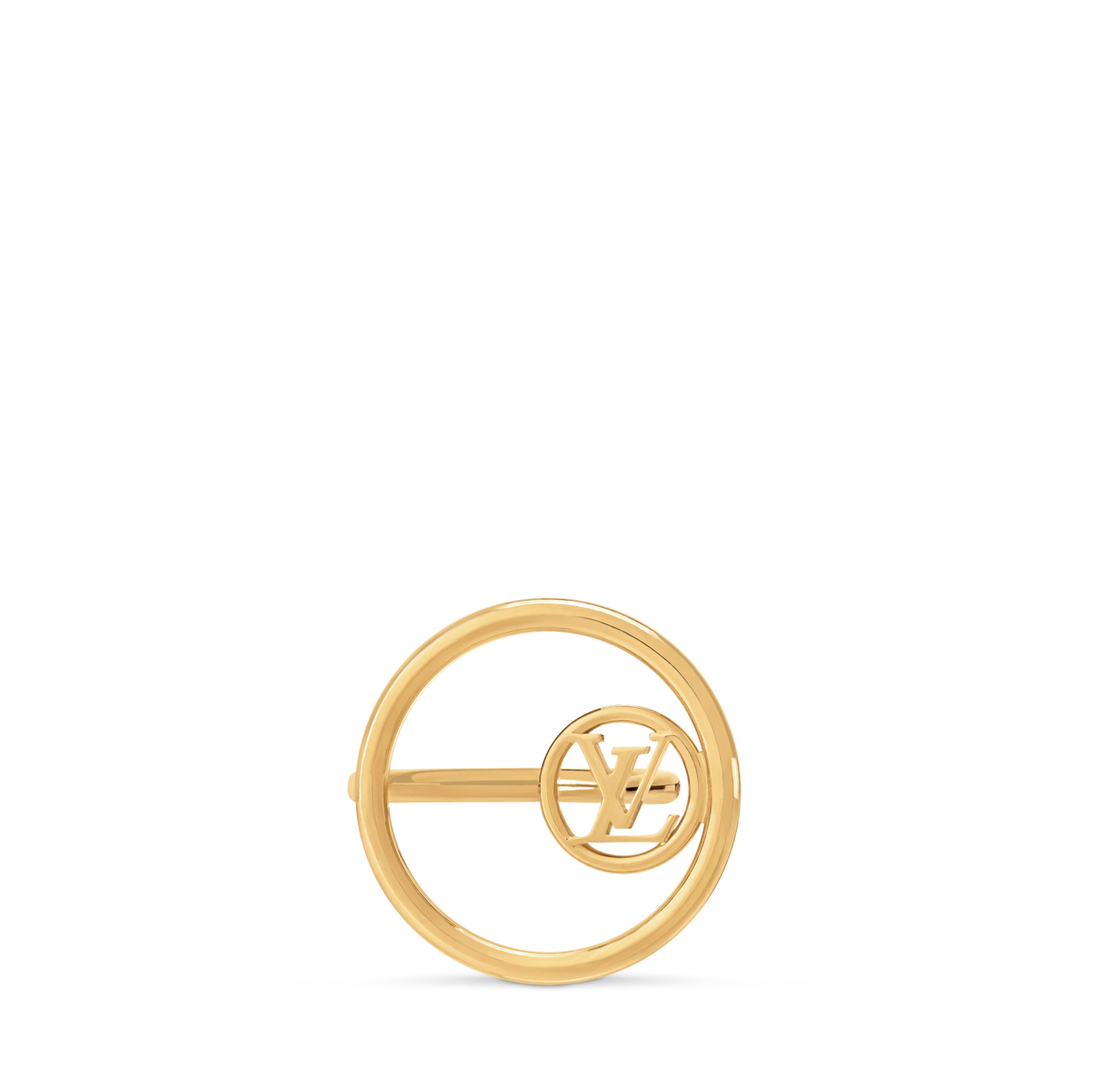 目を引く独創的なデザインが魅力の「リング・LV ループ」。洗練されたスタイルに若々しいエネルギーがとけ込んだアイテムです。光沢感のあるゴールドカラーのメタルで仕上げ、サークルの中に施されたLVサークルのエンブレムが軽やかさと力強さを表現しています。ルイ・ヴィトンのエスプリをまとった、存在感溢れるエレガントなリングです。