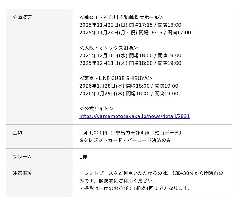 「Sayaka Yamamoto Hall Tour 2025-26 "home away from home"」に山本彩と写真が撮れるPhotomaticのセルフフォトブースが登場