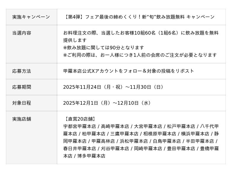 株式会社甲羅(本社:愛知県豊橋市、代表取締役社長:沼澤 裕)が、全国39店舗で展開する、かに料理専門店「甲羅本店」では、2025年10月23日(木)より「新“旬”感謝祭」を引き続き開催中です。