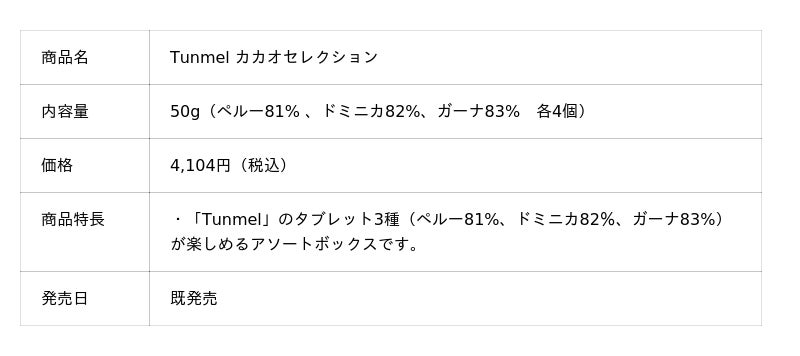 「Tunmel ボンボンショコラ カカオセレクション」 ~ 12月1日(月)以降、順次発売開始 ~