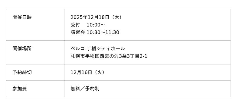 【第1回】12月12日(金)シティホール手稲前田 開催
