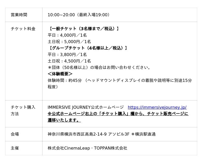 公式HP:https://immersivejourney.jp/
