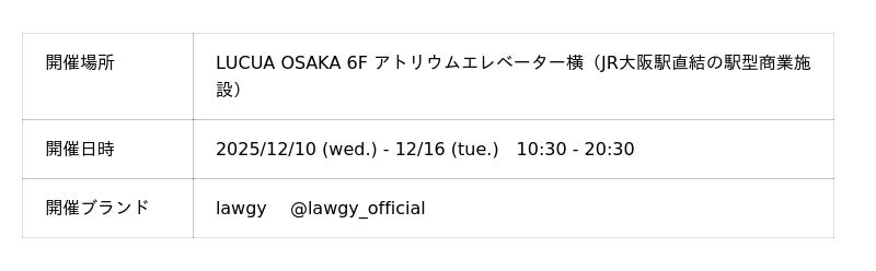 今回のPOPUPは当社ブランドlawgyの単独開催となります。