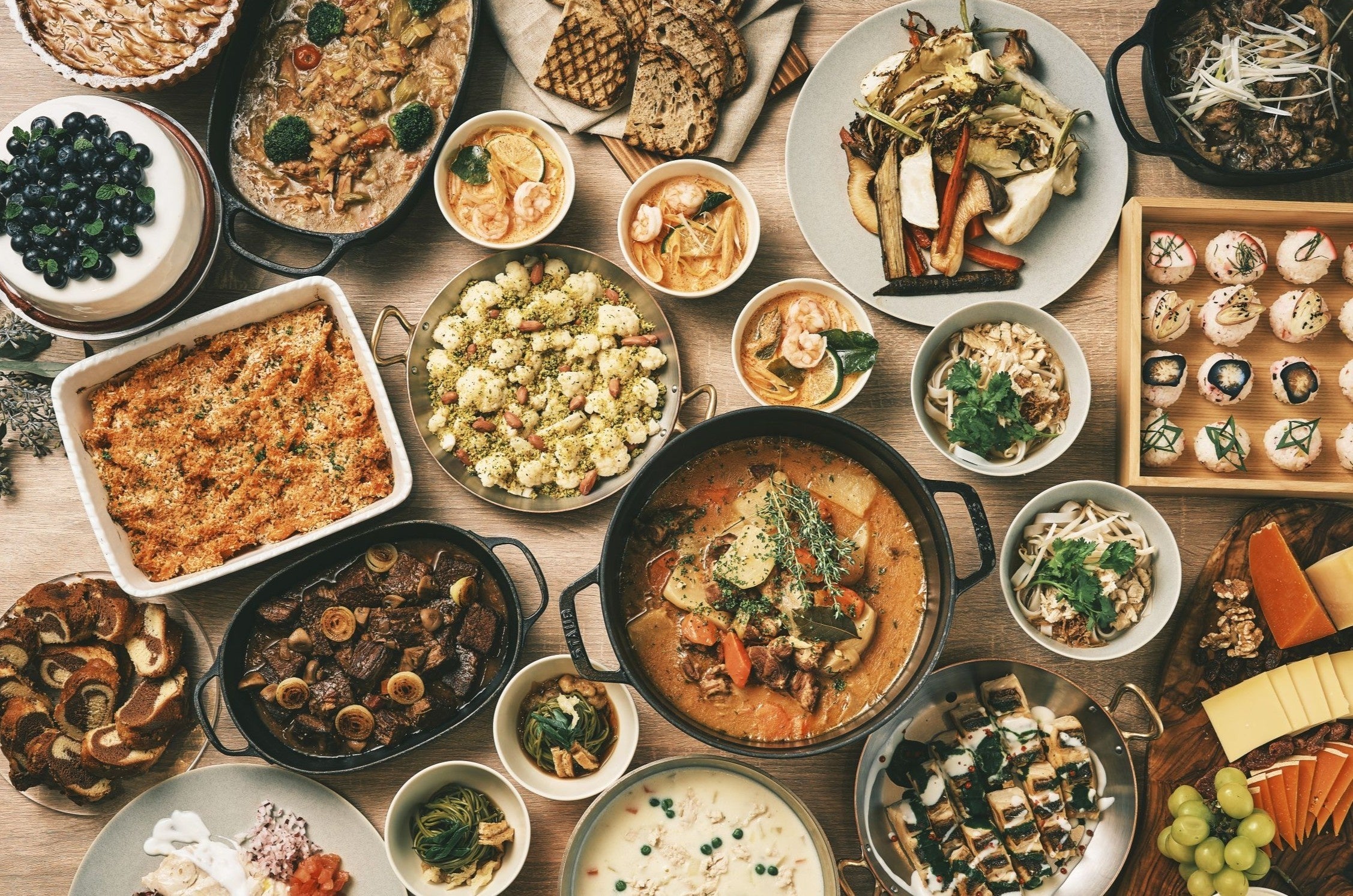 チキンとポテトのクリームスープ/クラムチャウダー/アジア風ホットアンドサワースープ/カリフラワーと落花生のスパイスパン粉焼き/牛肉のラグー、豆とリゾーニパスタ/目鯛の香り蒸し 京水菜、豆腐、金時人参 黒酢(ディナータイム限定)/シーフードポトフ風スープ/ちりめんキャベツ、カブ、ごぼう、エリンギ、ニンジンのロースト/クリーミーベイクドパスタ パスタアルフォルノ