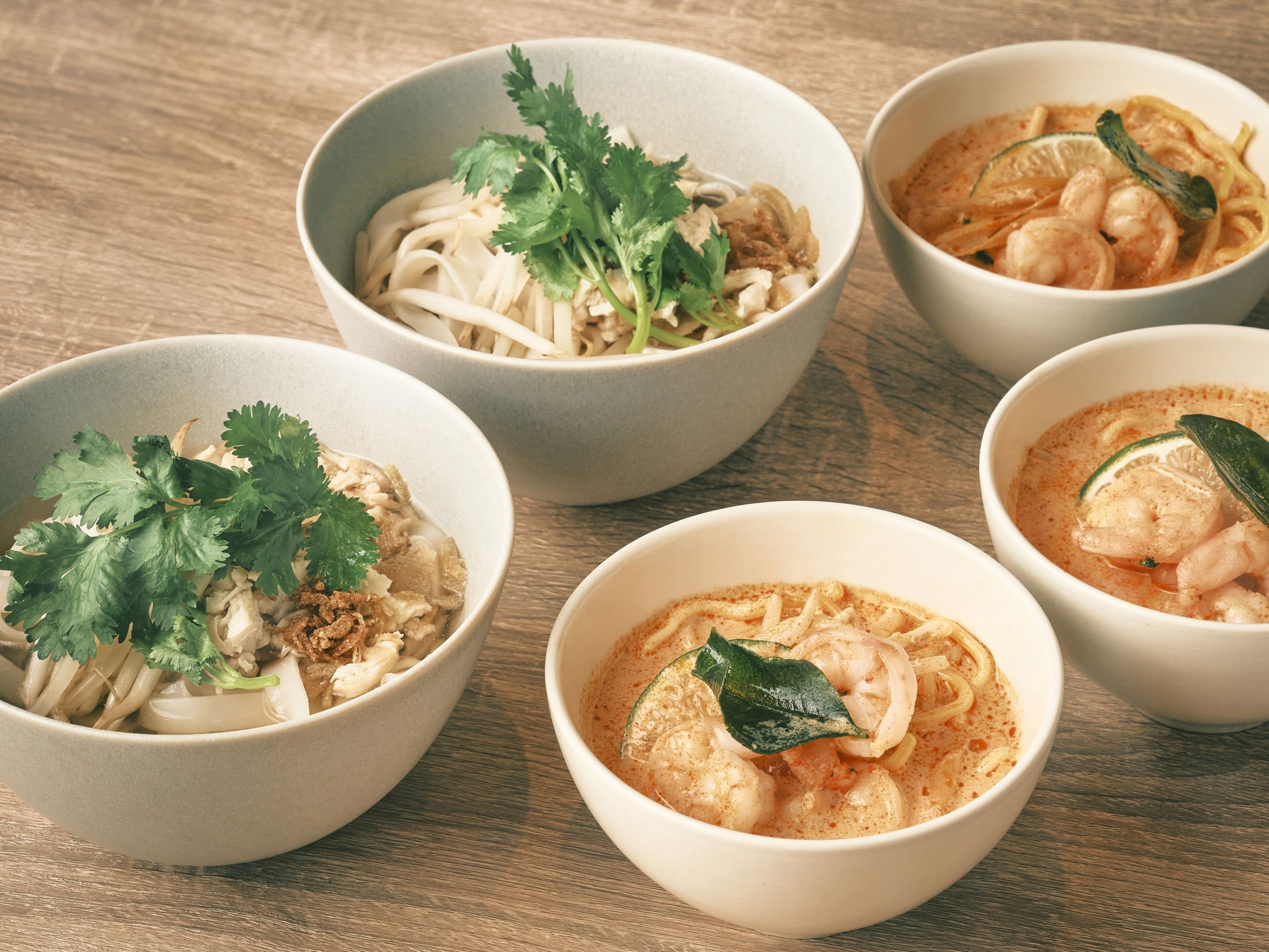 ヌードルステーション:ラクサ・ベタウィ(ディナータイム限定 右)/チキンフォー(ランチタイム限定 左)