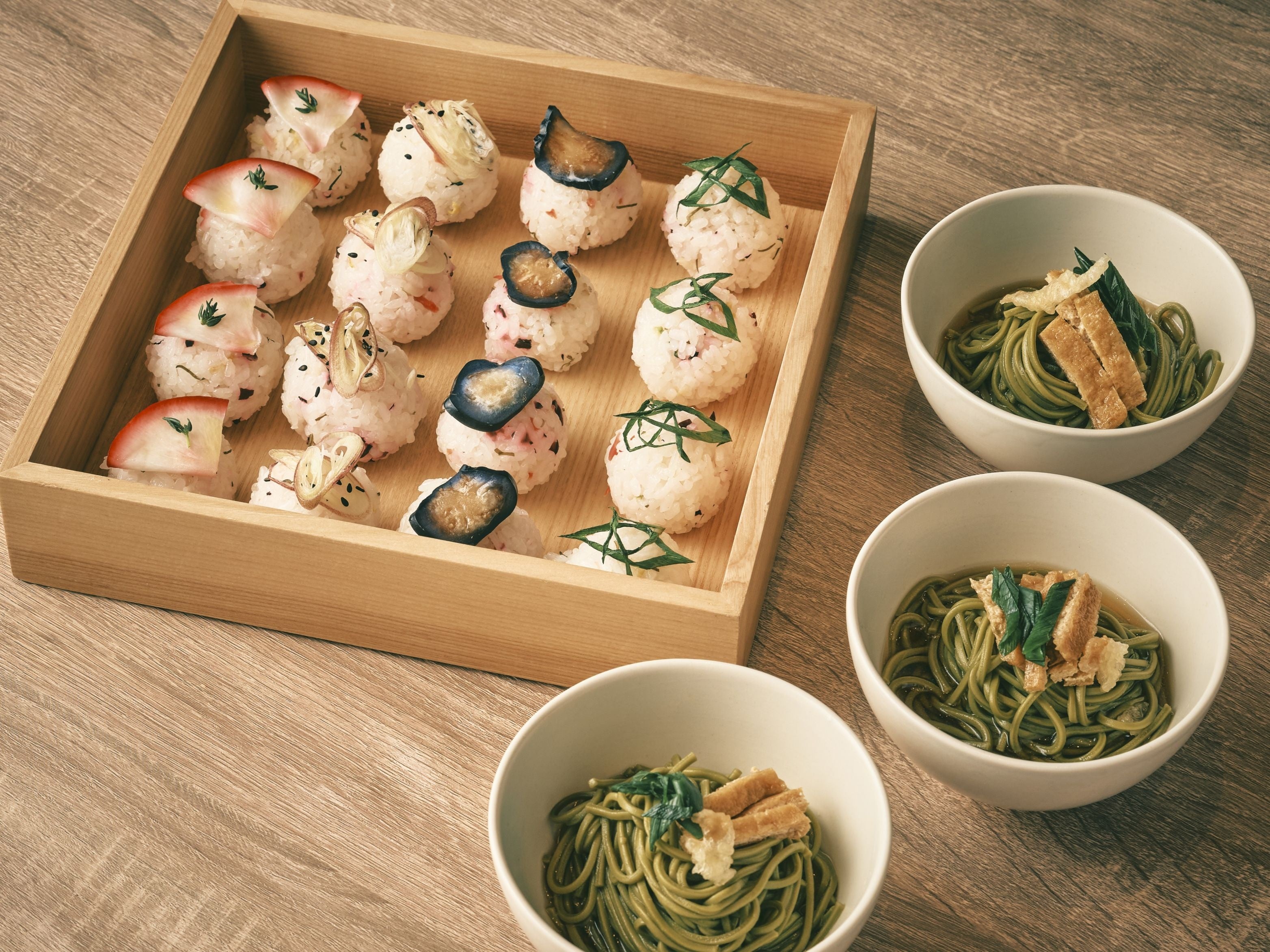 ベジタブル手毬寿司(ディナータイム限定)/温製茶そば