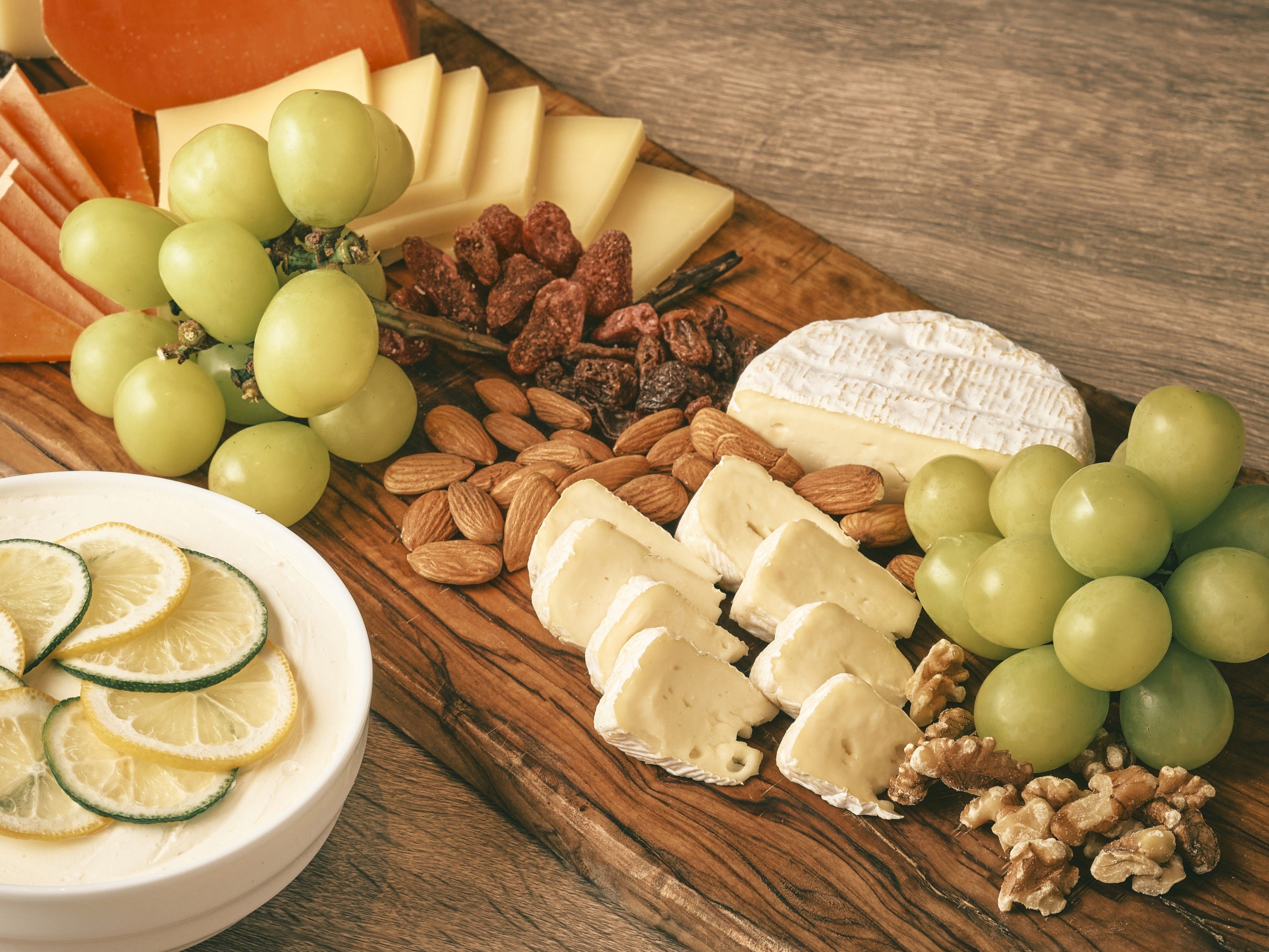 チーズセレクション:グリュイエールチーズ/シトラスクリームチーズ/カマンベールチーズ/ナッツ/ドライフルーツ
