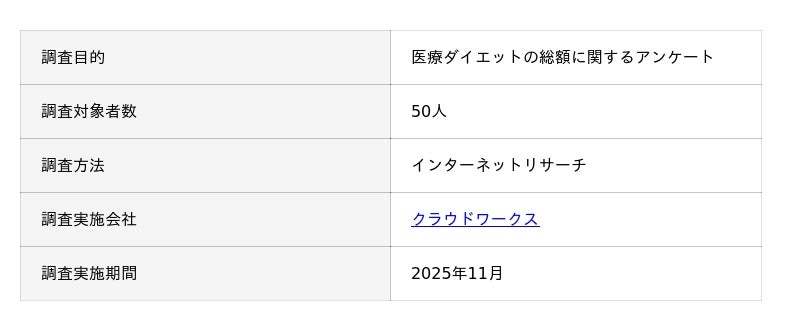 医療ダイエットの総額に関するアンケートの概要