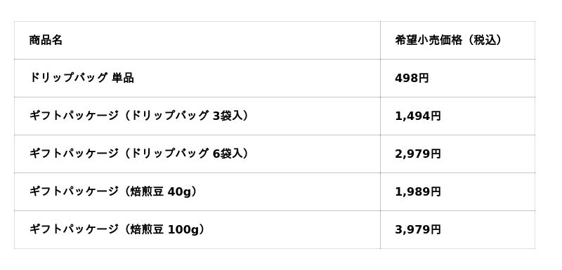 事業内容 :スペシャルティコーヒーギフト商品の企画・製造・販売、業務用焙煎豆の卸売